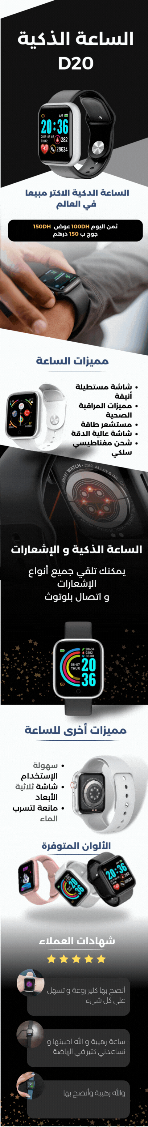 smart wach d20 ساعة ذكية تعمل بالبلوتوث ومقاومة للماء ومعدل ضربات القلب ومتعقب للياقة البدنية للرجال والنساء